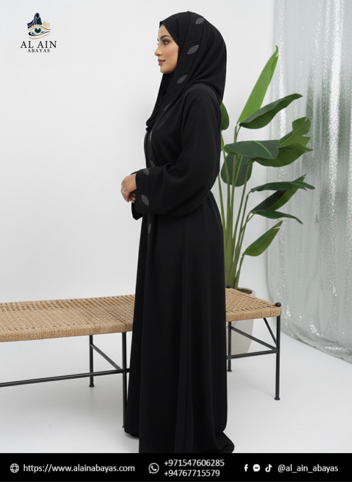 This elegant black abaya from Al Ain Abayas is a perfect blend of traditional modesty and contemporary sophistication. Designed for the modern woman, it features a timeless silhouette with refined artistic details.